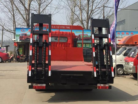 ★ 東風(fēng)多利卡型平板運(yùn)輸車車架低,承載能力大,使用壽命長。前輪可轉(zhuǎn)向,轉(zhuǎn)角達(dá)90°,在施工道路不平的情況下,能保持所有輪胎同時(shí)著地,保證車架和輪胎受力均衡合理,確保所載設(shè)備的安全。車輛裝有腳剎系統(tǒng)和手剎制動(dòng)。車輛尾部安裝專用機(jī)械式半自動(dòng)爬梯,履帶式工程設(shè)備可以自行上下平臺(tái)(無需其他任何起吊設(shè)備及輔助工具)直接與主車掛鉤連接。 | ||